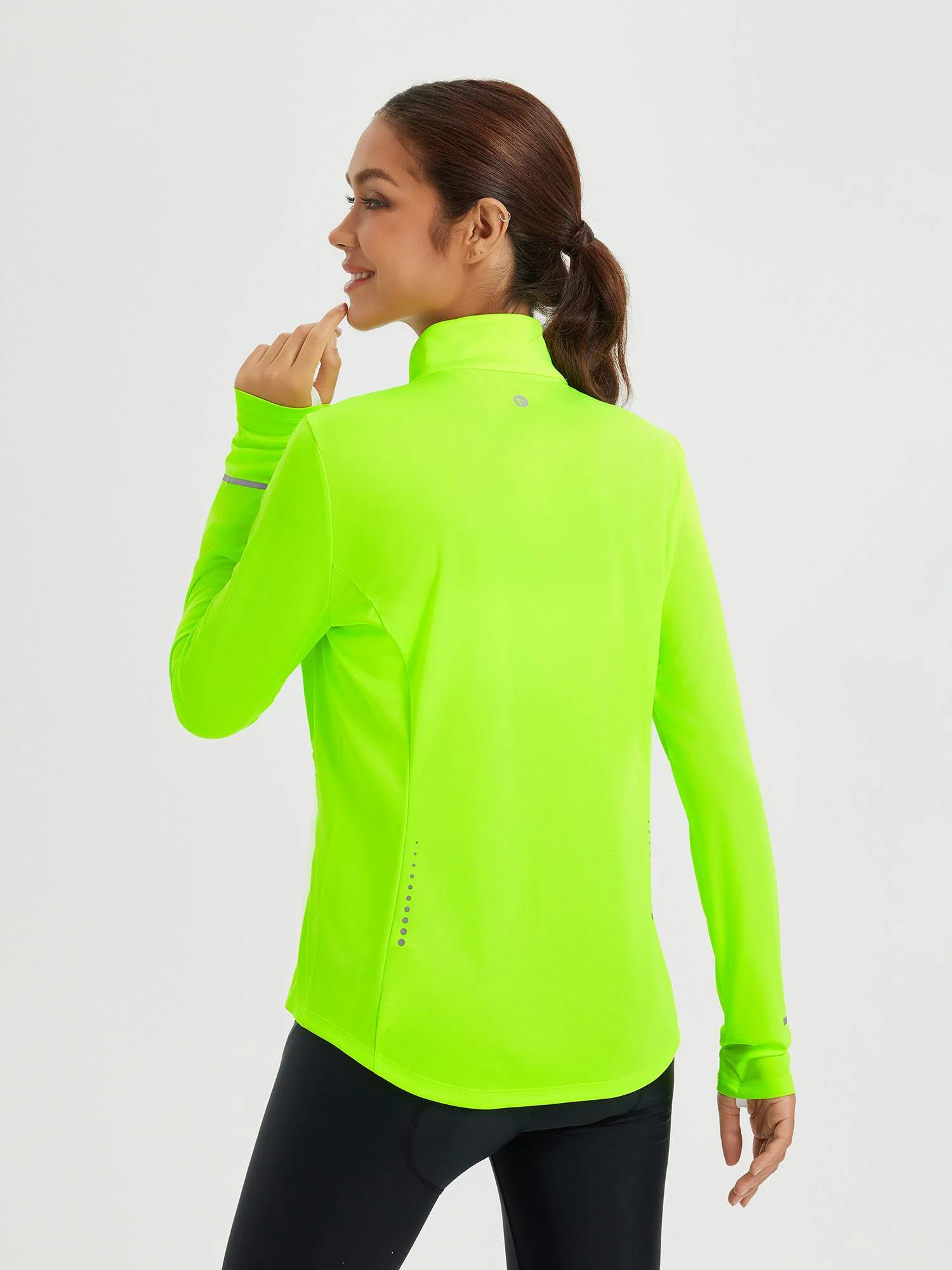 4 Pockets: This Running jacket features two side zipper pockets and two deep inner pockets, offering secure and easy access to your essentials while you ride.